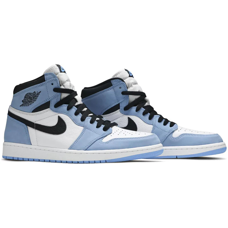 The Air Jordan 1 Retro High OG ‘University Blue’ makes use of a familiar palette that gives the nod to Michael Jordan’s UNC alma mater. The all-leather upper features a white base with powder blue overlays and a black signature Swoosh. Matching black accents make their way to the collar, tongue tag and printed Wings logo on the lateral collar flap. A brighter shade of blue is applied to the standard AJ1 outsole, featuring multi-directional traction and a pivot point under the forefoot.