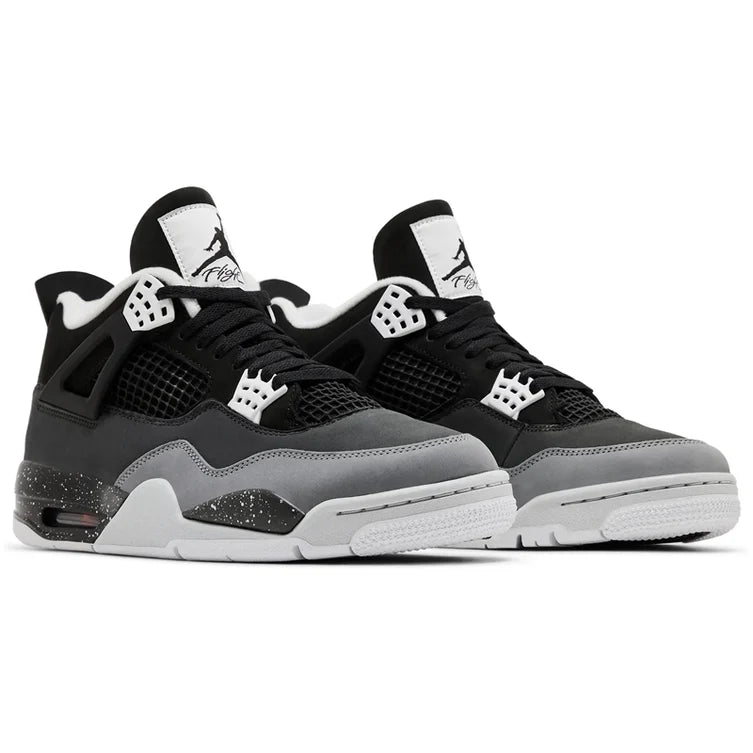The 2024 edition of the Air Jordan 4 Retro 'Fear' brings back a neutral colorway of the classic silhouette. Originally released in 2013, the mid-top sports a smooth nubuck upper, featuring a mudguard and toe wrap in two shades of grey. Molded eyelets are rendered in white, matching the Jumpman branding hits that decorate the woven tongue tag and back heel. White speckled detailing covers a black polyurethane midsole with visible Air-sole cushioning in the heel.