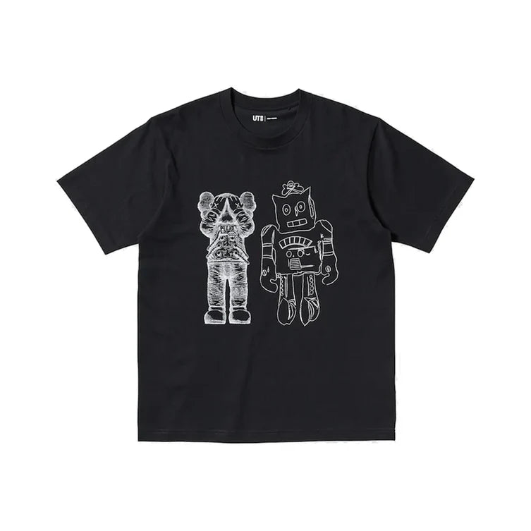 Introducing the KAWS x Uniqlo Warhol UT Graphic T-Shirt in 'Black/White,' a striking fusion of KAWS' playful art and Warhol’s iconic pop art style. Made from premium cotton, this graphic tee delivers a relaxed fit and all-day comfort. The bold black and white design showcases an eye-catching Robot Warhol-inspired graphic, paired with KAWS' signature characters for a unique, artistic vibe. The monochrome colorway adds versatility, making it easy to pair with any streetwear look. Whether you're out on the town or chilling at home, this graphic tee adds a creative and bold statement to your wardrobe. Shop now and own a limited-edition piece from this iconic collaboration!