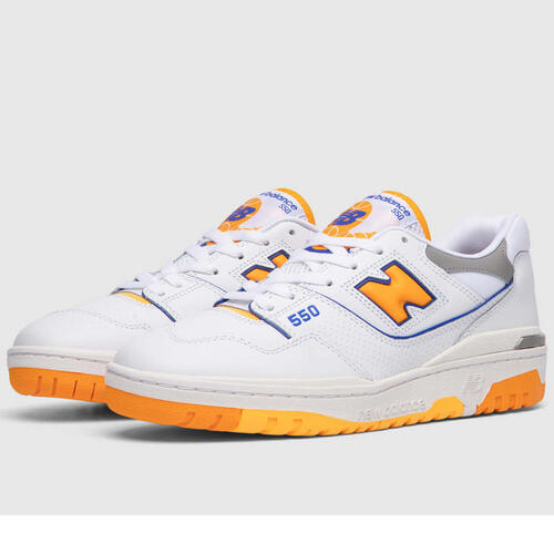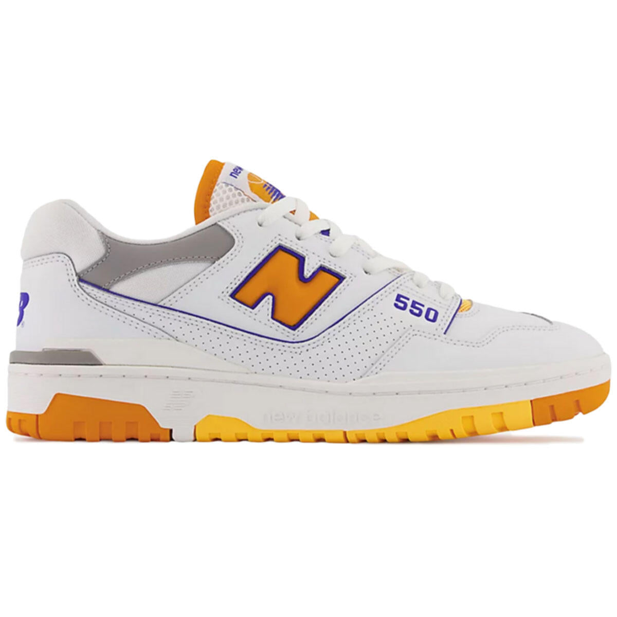 New Balance takes inspiration from the team colours of the LA Lakers with these 550 sneakers. Cut to an effortless low-top silhouette, they are detailed in white, vibrant orange and purple hues for a lively finish.
