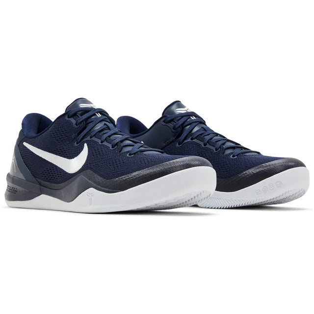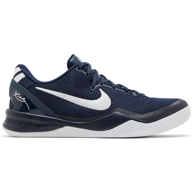 The Nike Kobe 8 Protro 'Lakers Home' dresses the retro silhouette in a white engineered mesh upper. A purple embroidered Swoosh adorns the lateral quarter panel, while Kobe Bryant's sheath logo in University Gold appears on the tongue and back heel. An external TPU heel counter offers rearfoot support, while a drop-in React foam midsole delivers lightweight cushioning with every step. Underpinning the sneaker is an exposed carbon fiber shank plate and a herringbone traction rubber outsole.